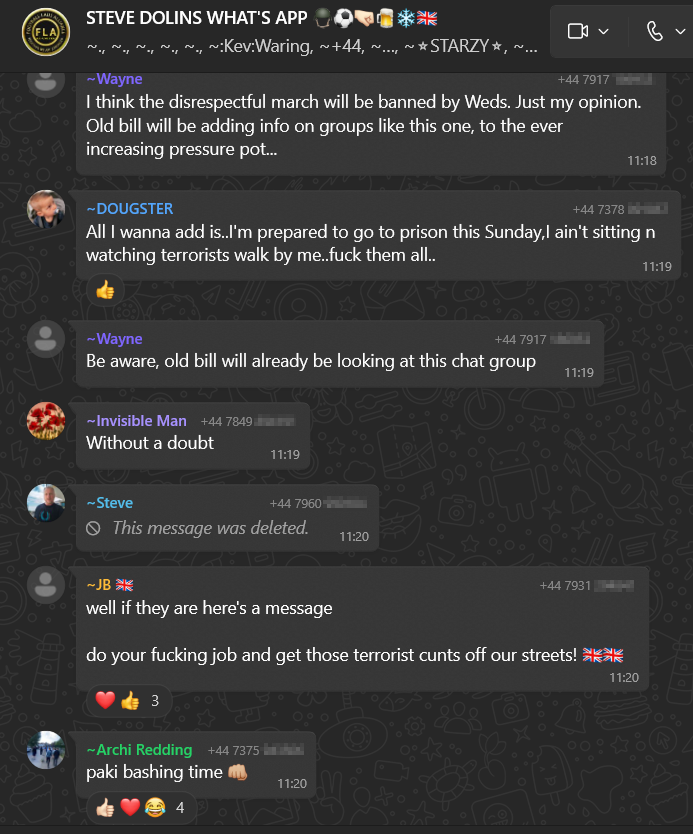 We have seen messages in which far-right activists discuss attacking pro-Palestinian protestors, anti-fascists and ethnic minorities. These threats should be taken seriously.