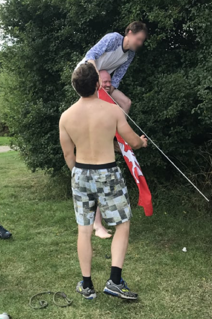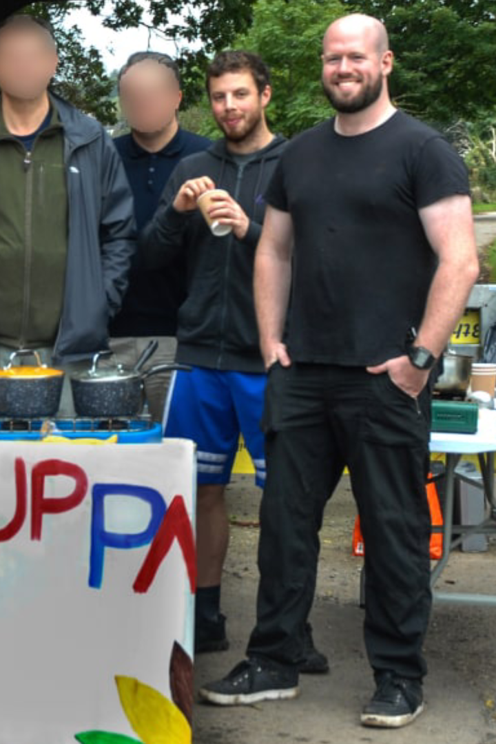 Shepherd was heavily involved in PA for some time before we were able to identify him. He often appeared in photographs from PA Yorkshire fitness events with his face away from the camera or blurred out and it was clear he was an active member of the group. When we first photographed him ourselves, at PA’s national hike in Edale in 2021, one thing which immediately caught our attention was the distinctive patterned shorts he was wearing, as we’d seen them before in photographs of several events shared by PA.