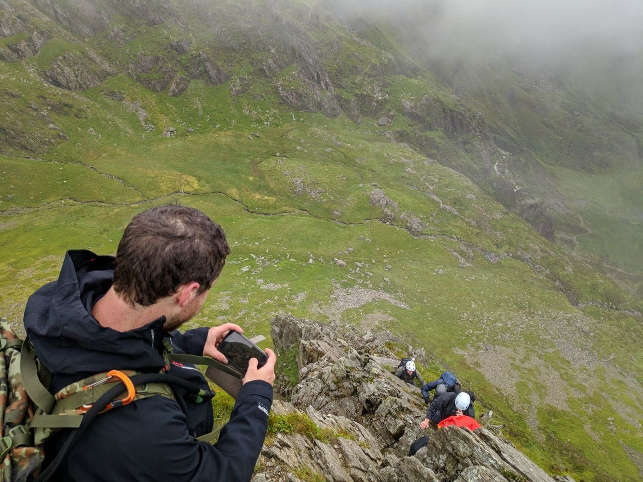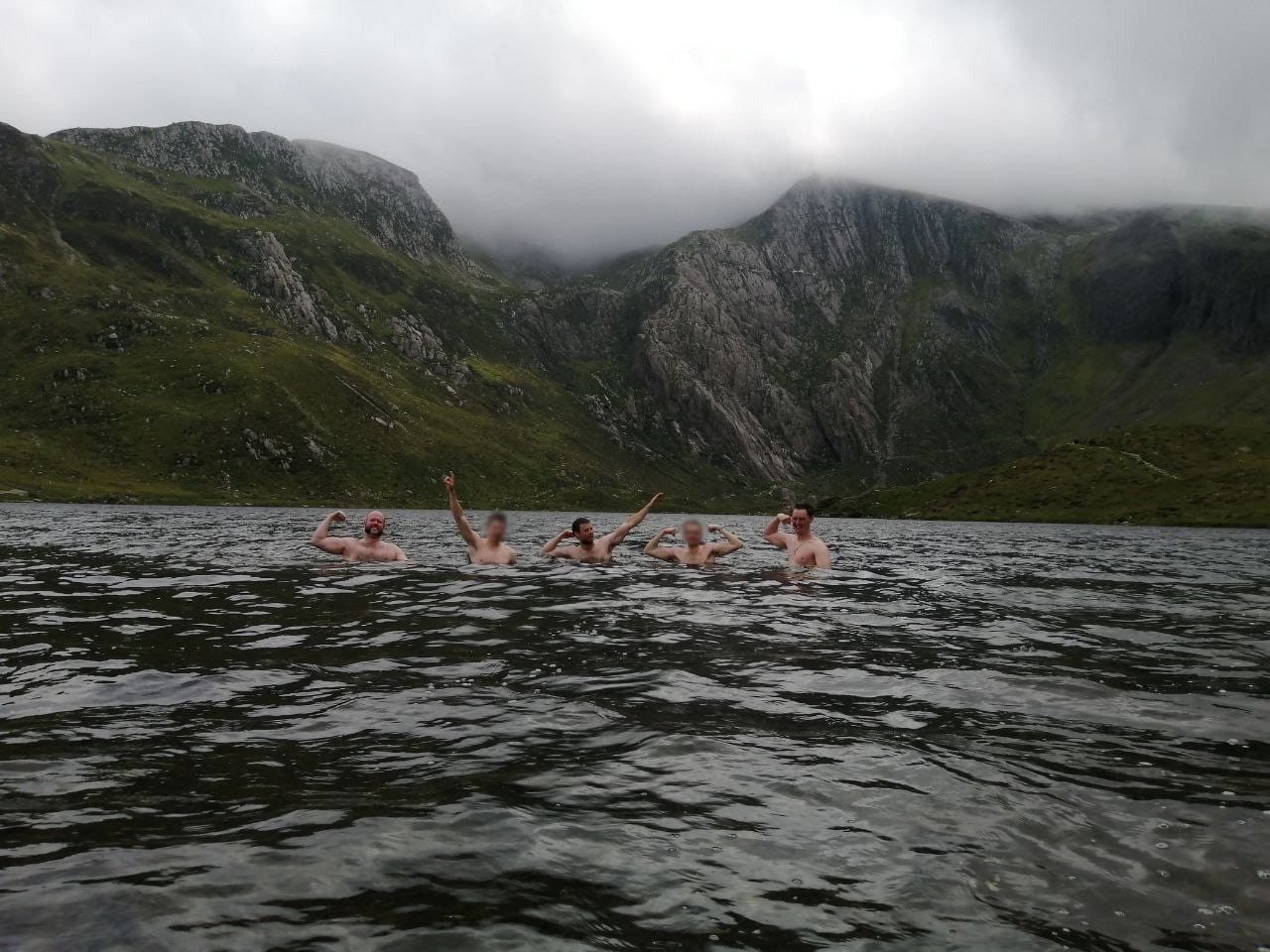 The Craghoppers AquaDry jacket which Shepherd is wearing on the White Stag Wildboar Clough hike appears in PA’s photos, such as the below, taken during a scramble on Glyder Fawr in Snowdonia in July 2002. The AquaDry logo can be seen on the right sleeve of the jacket as Shepherd stops to take a photograph. Shepherd appears in a photograph of some members of the group swimming in Llyn Idwal after the hike.