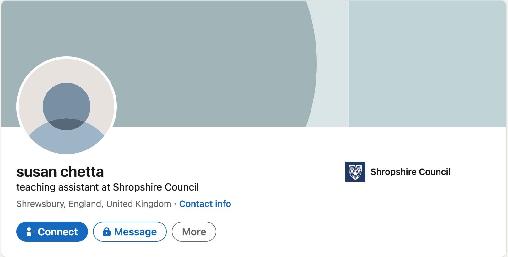 Chetta claims to work as a teaching assistant in the Shrewsbury area for Shropshire Council, according to her profile on the business networking website LinkedIn.